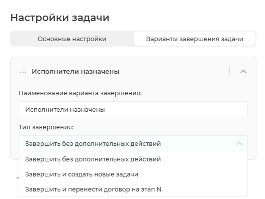 Перед завершением задачи убедитесь, что работа со всеми ручными задачами, относящимися к договору, закончена.