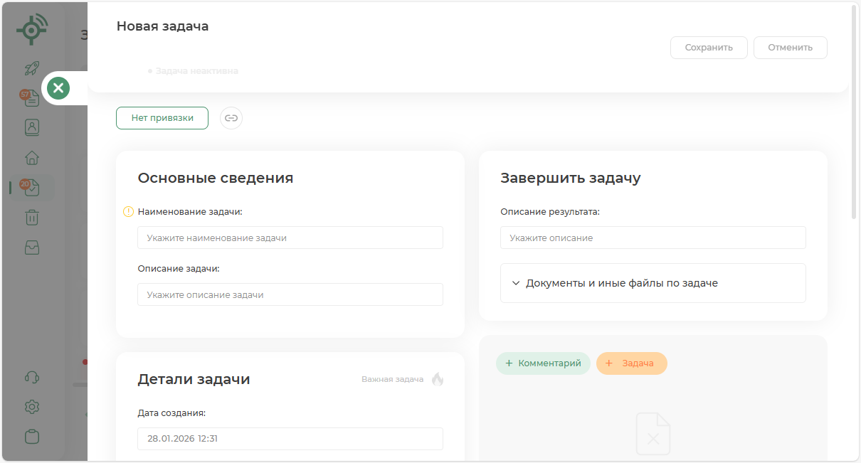 Задача создается автоматически для менеджера, если при выполнении какой-либо задачи клиент изъявил желание отказаться от услуг по договору.