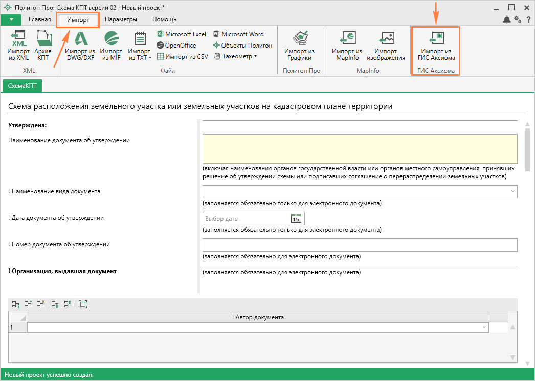 - Перейдите на вкладку «Импорт» и нажмите кнопку «Импорт из ГИС Аксиома»;