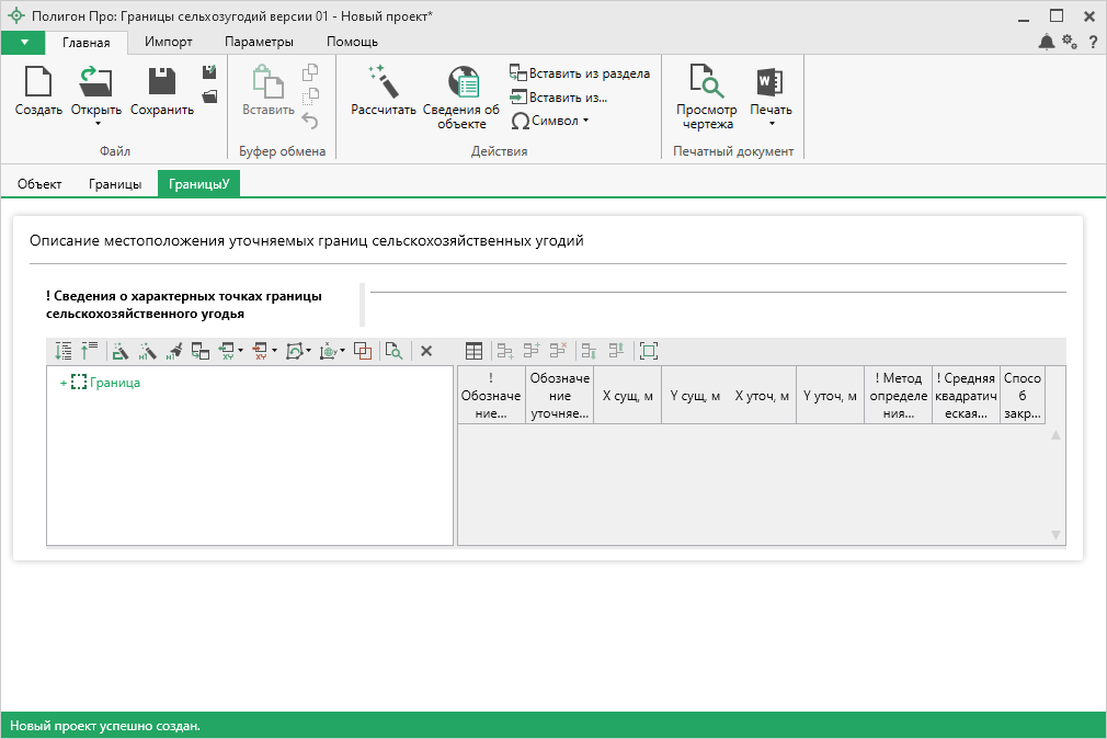При установлении новых границ сельскохозяйственных угодий заполняется только раздел «Границы». При уточнении существующих границ сельскохозяйственных угодий заполняется только раздел «ГраницыУ».
