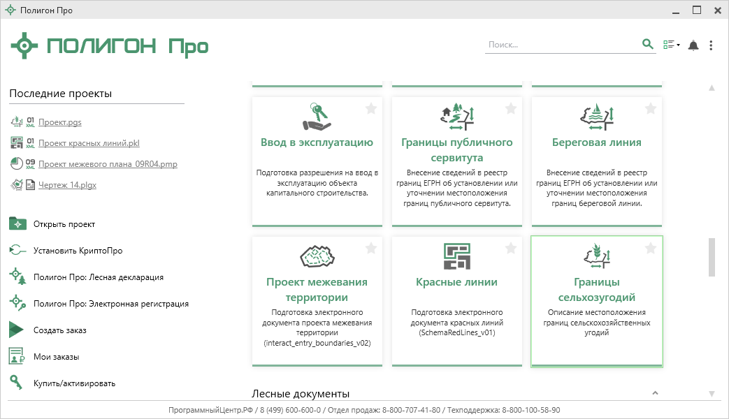 Модуль "Границы сельхозугодий" позволяет сформировать описание местоположения границ сельскохозяйственных угодий в соответствии с приказом Росреестра от 19.09.2025 №П/0339/25 «Об установлении формы графического описания местоположения границ сельскохозяйственных угодий в составе земель сельскохозяйственного назначения, требований к формату электронного документа, содержащего сведения о границах сельскохозяйственных угодий в составе земель сельскохозяйственного назначения».