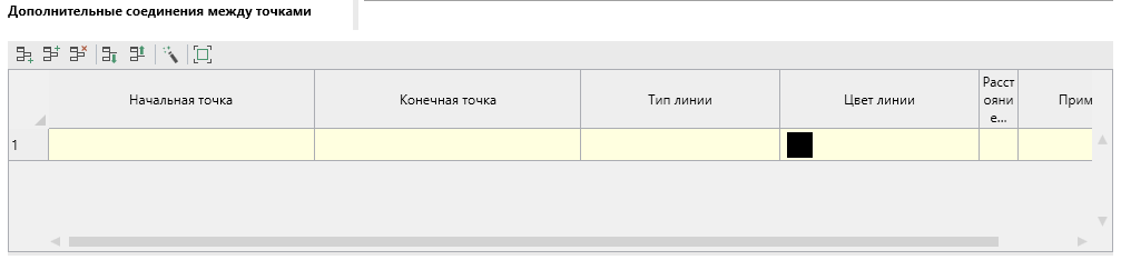 В таблице "Дополнительные соединения между точками" добавляются точки, для которых необходимо сформировать линии соединения.
