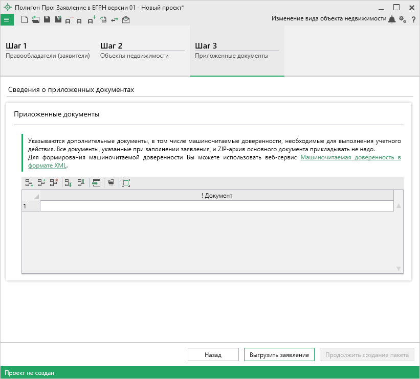 Второй шаг предназначен для ввода сведений об объектах недвижимости.