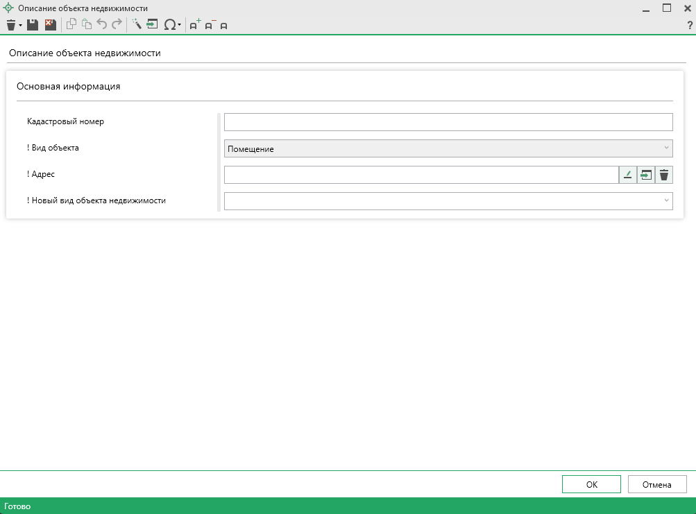 Далее заполните поле "! Новый вид объекта недвижимости".