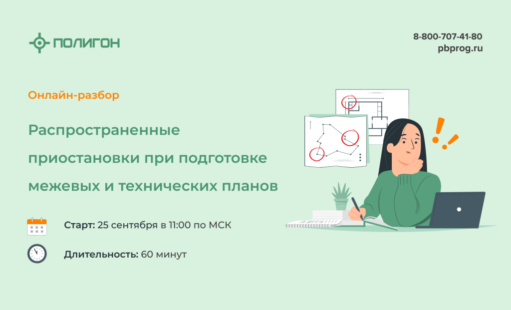 25 сентября в 11:00 мск мы проведем онлайн-разбор «Распространенные приостановки при подготовке межевых и технических планов».