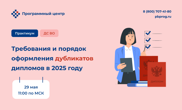 29 мая в 11:00 мск на вебинаре разберем актуальные требования к оформлению дипломов и дубликатов в 2025 году, пошагово заполним документы в программе «Диплом-стандарт ФГОС ВО», сформируем и выгрузим данные для отправки в ФИС ФРДО, а также ответим на вопросы.
