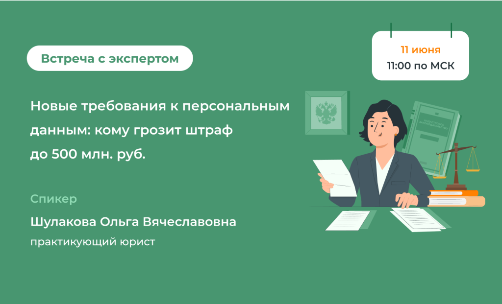 9 июня в 11:00 мск мы проведем вебинар «Новые требования к персональным данным: кому грозит штраф до 500 млн. руб..