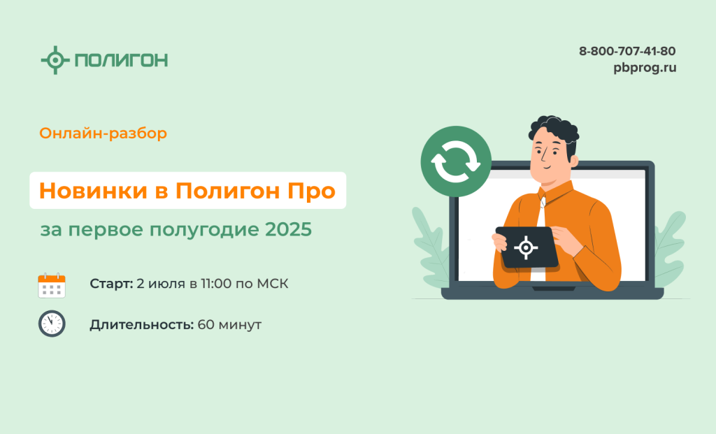 На онлайн-разборе обсудим ключевые обновления в Полигон Про за первые полгода 2025. Расскажем о новых функциях, обновлениях программы по требованиям законодательства. Также поделимся планами на вторую половину 2025 года и ответим на ваши вопросы.