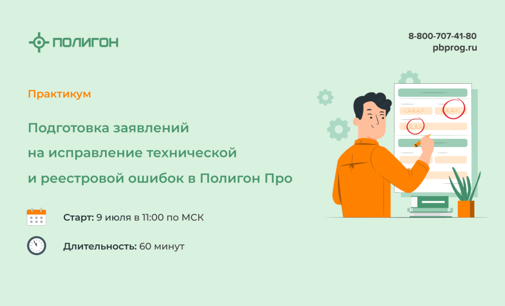 9 июля в 11:00 мск мы проведем вебинар «Подготовка заявлений на исправление технической и реестровой ошибок в Полигон Про».