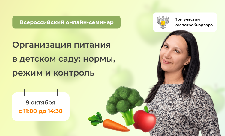 Подключайтесь на семинар из любой точки мира и задавайте вопросы спикерам: представителям Роспотребнадзора, заведующей детского сада, технологу с 15-летним опытом работы.
