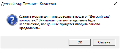 Чтобы удалить все нормы полностью для данного типа довольствующихся, нажмите
