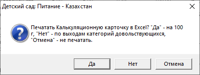 Нажмите "Да", чтобы пересчитать пищевую ценность, или "Нет", чтобы отменить пересчет.