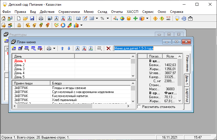 Программа "Детский сад: Питание - Казахстан" предназначена для работы на одном рабочем месте (1 ПК).