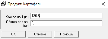 программа автоматически пересчитает количество всех продуктов, которые входят в выбранное блюдо в качестве ингредиентов.