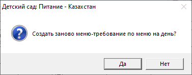 Чтобы выполнить быстрое обновление меню-требования, если были внесены изменения в технологические карты, нажмите кнопку